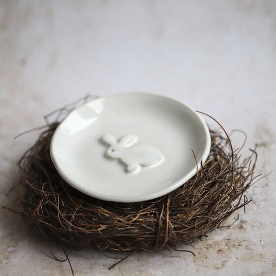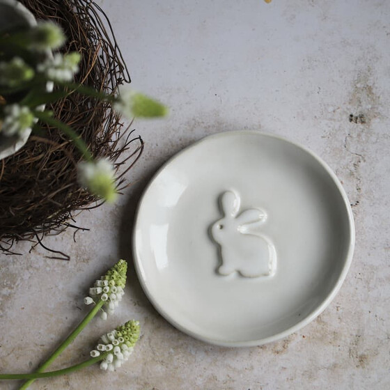 Ceramic plates with Easter bunnies - decoration for the Easter table / different sizes